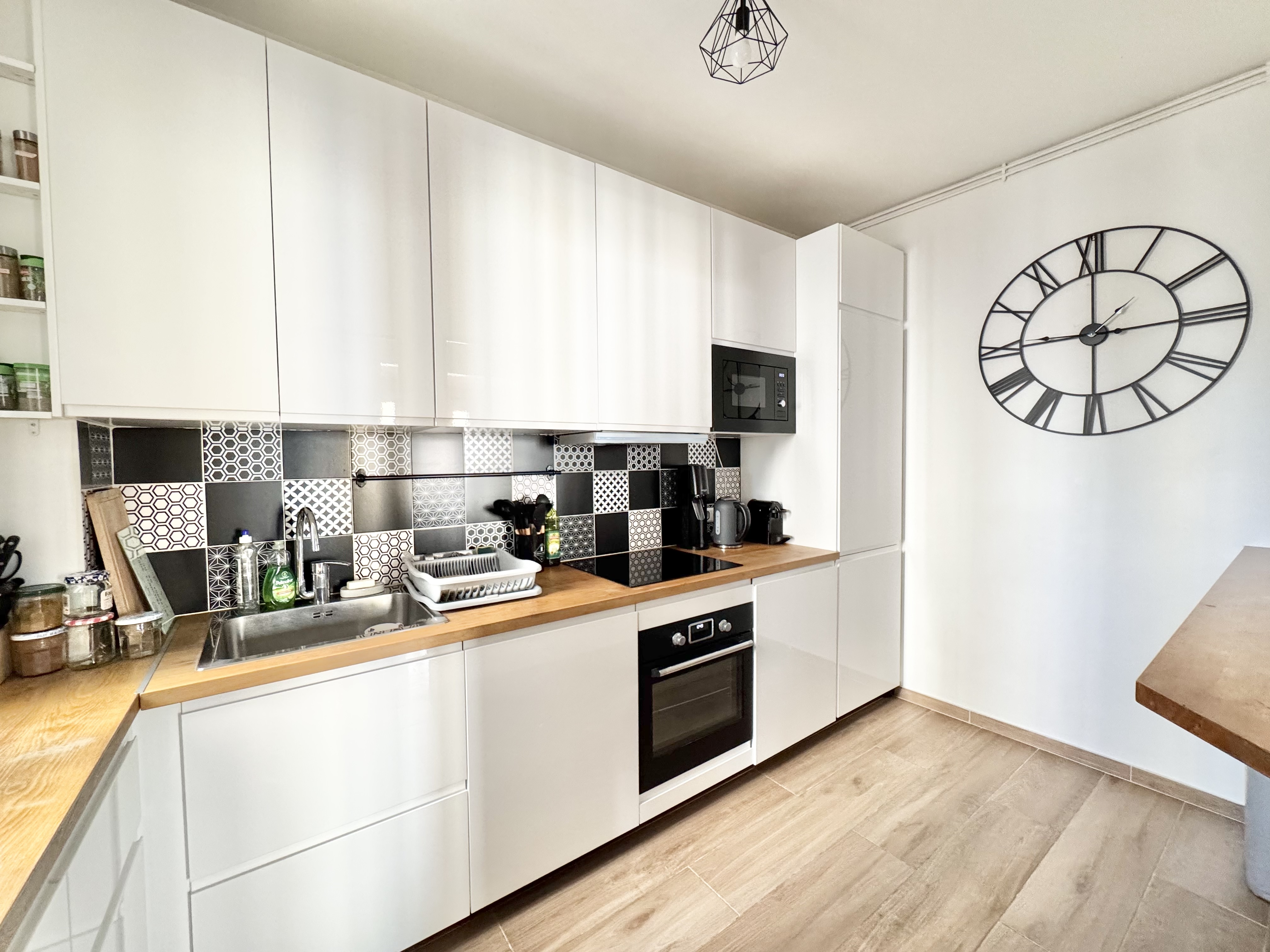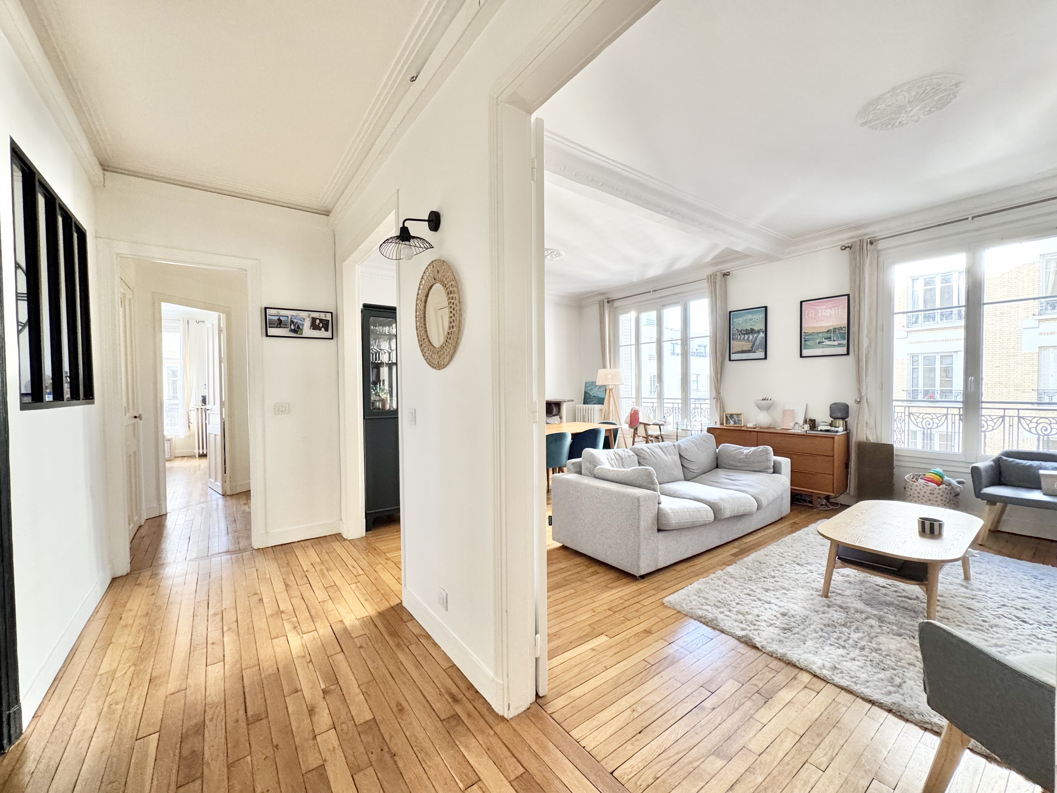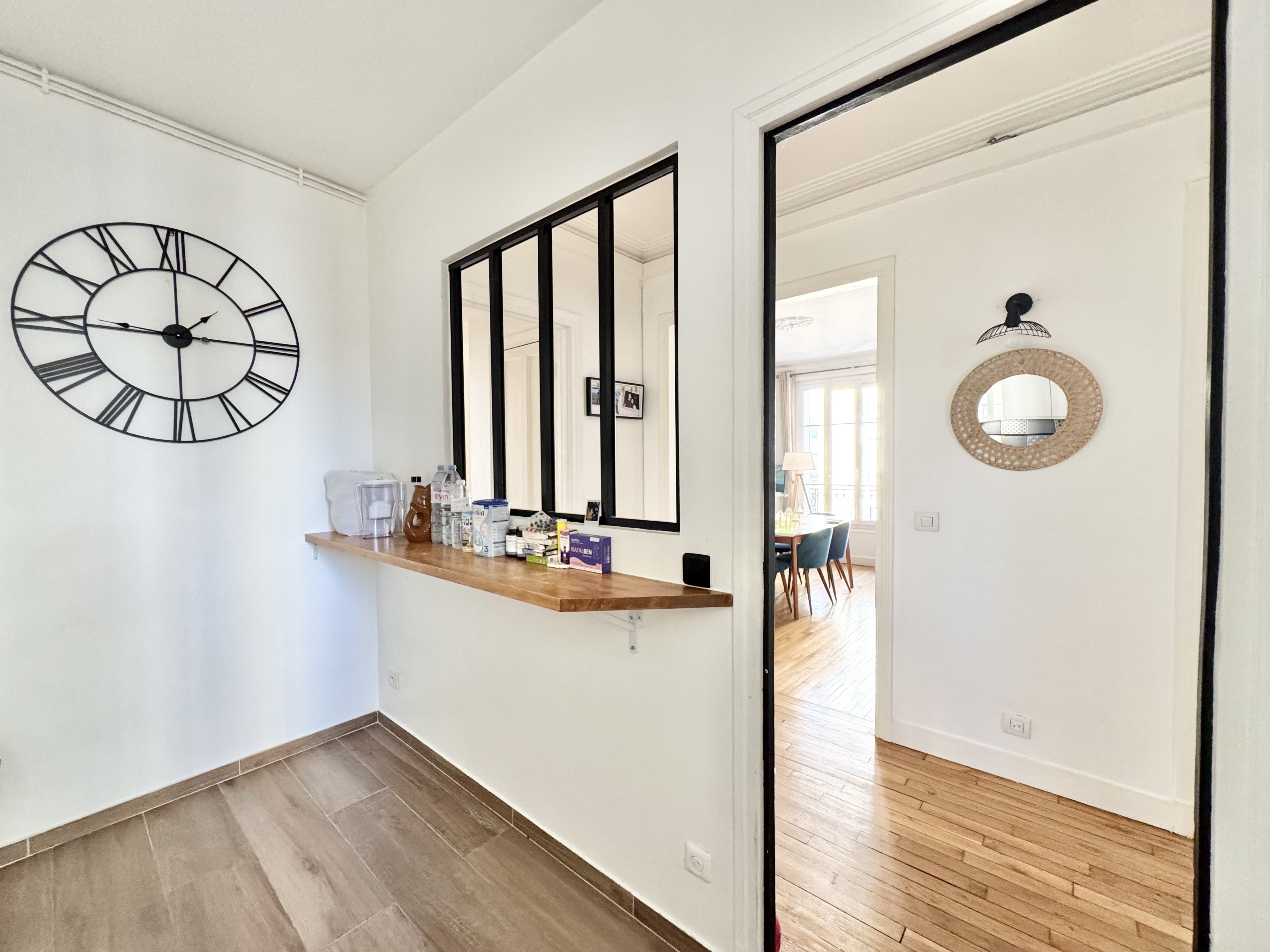 L’appartement se distingue par un double séjour lumineux aux beaux volumes, bénéficiant d’une belle hauteur sous plafond et d’un parquet d’origine plein de cachet. La cuisine indépendante est à la fois fonctionnelle et agréable à vivre.